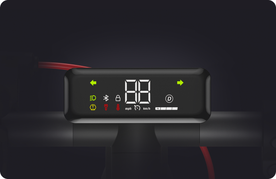 Als het thermometerpictogram op het dashboard knippert, betekent dit dat de batterijtemperatuur te hoog of te laag is. In dit geval zal de acceleratie van de scooter zwakker zijn, wat kan leiden tot onvermogen om te rijden of op te laden. Probeer de scooter te gebruiken of op te laden zodra de temperatuur zich weer binnen het normale werkbereik bevindt.